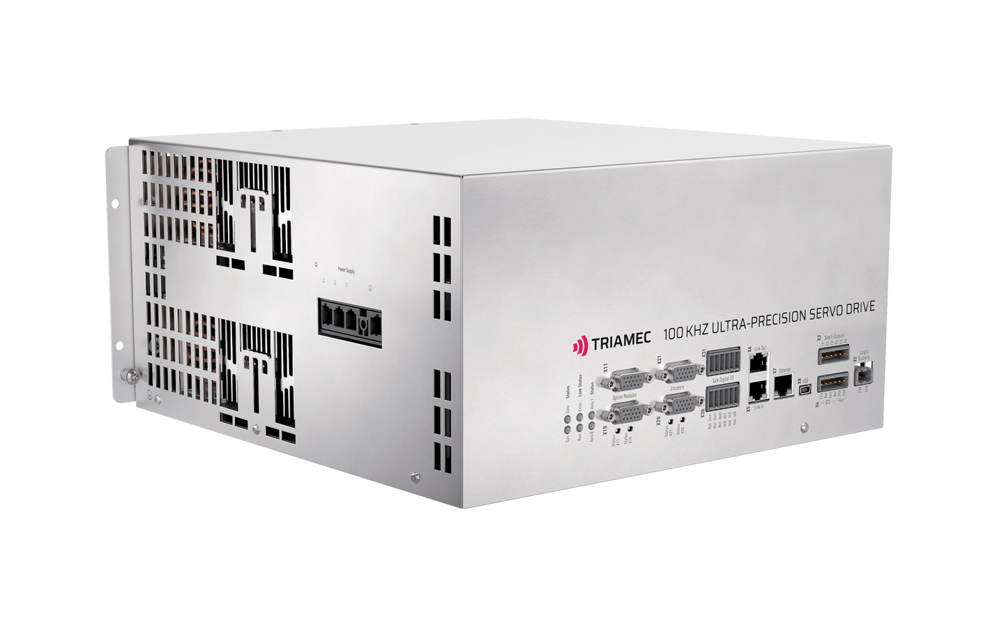 The TSP700-40 servo drive extends the new generation in the upper voltage range (700VDC). At 40Arms and 80Apeak it delivers ultra-precision at very high power. The controller is 100kHz for position and current. Furthermore, various expansion modules are available: sin/cos encoders up to 10MHz/18bit, as well as various A/D converter inputs and a universal module.