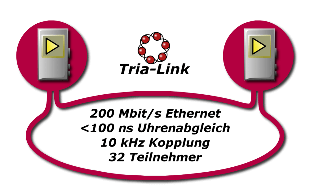 The data transmission of up to 32 participants in a 10 kHz cycle enables the transmission of motion data of coupled axes with the full quality of path planning. In addition, the Tria-Link synchronizes the clocks of the participants extremely precisely (<<100 ns), thus minimizing jitter.